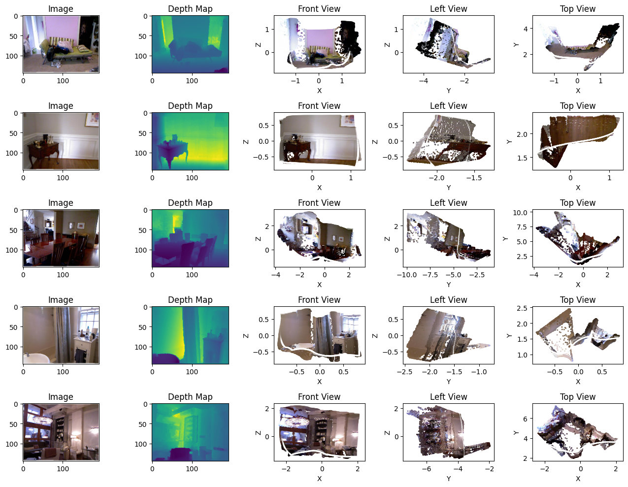 NUY Depth V2 is a large dataset that contains indoor scenes. The following presents some scene examples from the data and different views of the constructed 3D point of these scenes.
